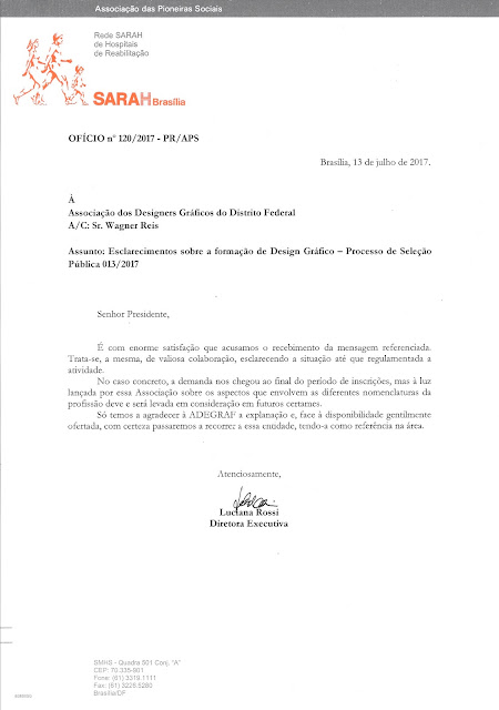 Nossa solicitação foi com a proposta de tentar evitar conflito maior e para não atrasar a contratação de um(a) colega designer gráfico. Em função disso, reiteramos nossas considerações.